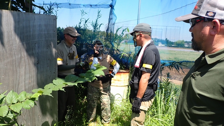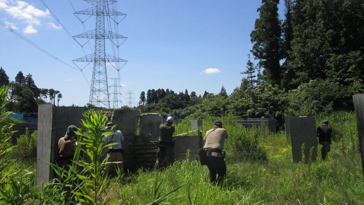 ガイチ隊員 フィールドまでの道中はHPの案内に従ってすんなり到着。 駐車場があぜ道のような場所に縦一列で停めるので定例会では出る順番に苦労しそうです。 車高が低い私の車は手前の舗装部分に止めさせてもらいました。 セーフティーは14人で座るには十分な広さ。 トイレや洗面所は隣接する建物に結構な広さがあり、綺麗にされています。 フィールド内はバス?を中心にほぼ四角形に作られ、バリケ・ブッシュが点在します。 特にブッシュは踏み荒らされていないので、進行ルートを読まれにくくその場で隠れることもできるので、面白いゲームができました。 ちょっとビックリしたのがバスの屋根に上った時に、上を走る高圧送電線の影響か金属部分に触るとバチッと静電気のようなものを受けるので、注意が必要です。 気温が高すぎて全開で遊べませんでしたが、少人数での貸し切りにはもってこいのフィールドだと思います。 機会があればまた来たいと思います。 |