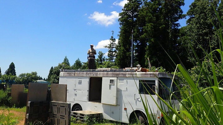 ヒットされちゃった後は中央にある大方バスの屋根に登って見学することができます