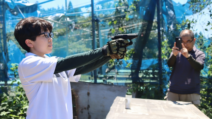 モッチーがいろいろな射撃のポージング写真を撮ったりしていました