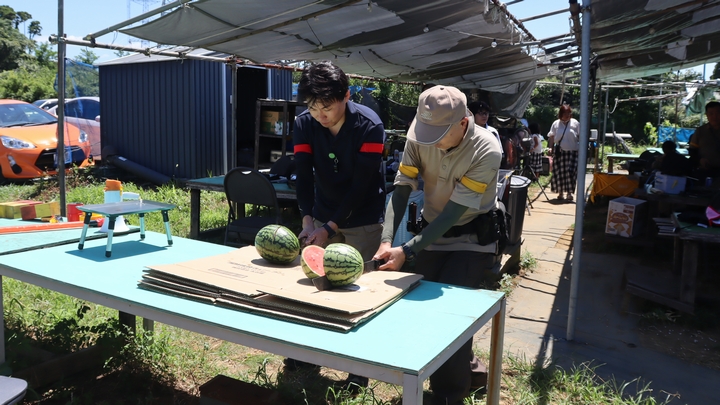 スイカカットの瞬間は裏画面にスライドショーでどうぞ