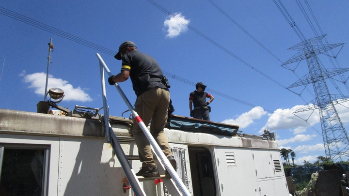 バリケードの隙間からうずくまって何かを探しているマサイ隊員を見つけました
