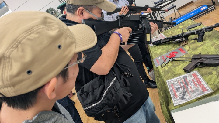 ブローバックアクションを強化した電動ガンを試射するウラノ隊員
