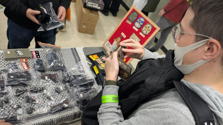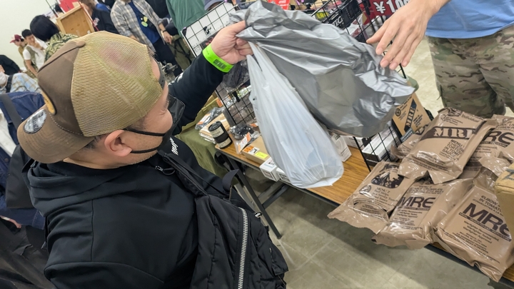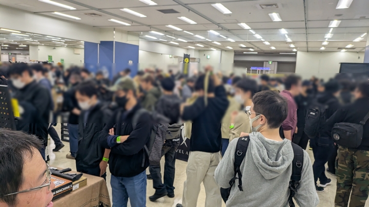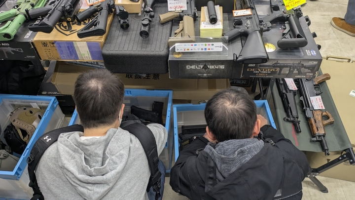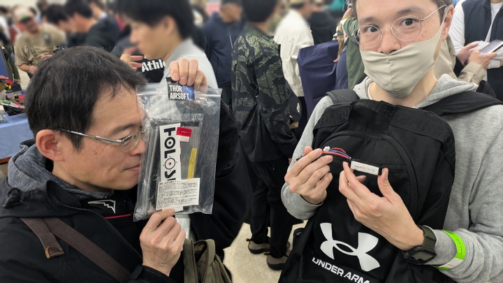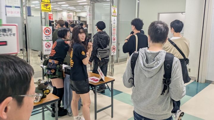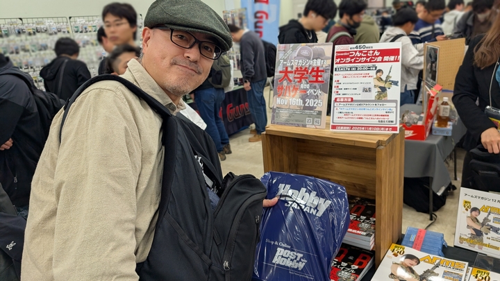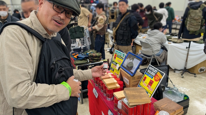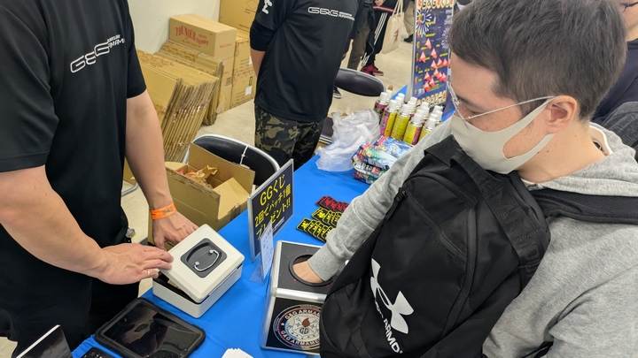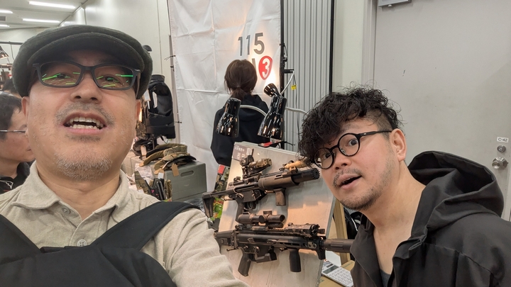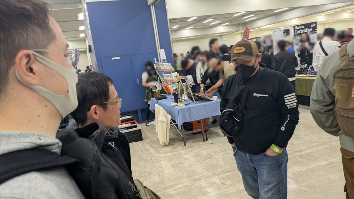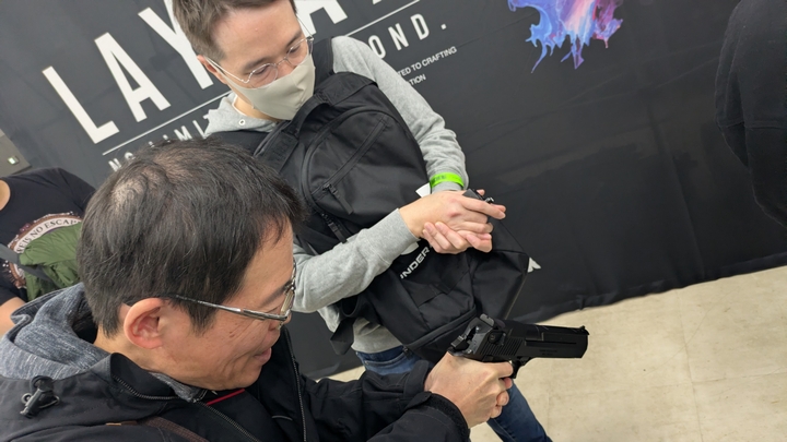 LAYLAXのブースでデザートイーグルの試射をするガイチ隊員